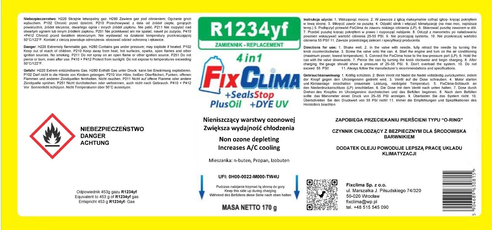 Car Air Conditioning Recharge Gas R1234YF – FIX 4‑in‑1 Refrigerant